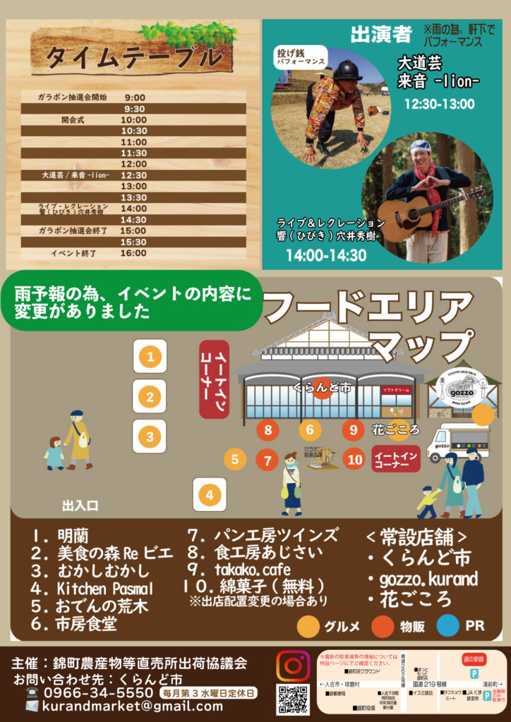 ※こちらは道の駅錦に併設する農産物直売所「くらんど市」のホームページですので、道の駅錦の情報については、錦町もしくは国土交通省のサイトを閲覧ください。