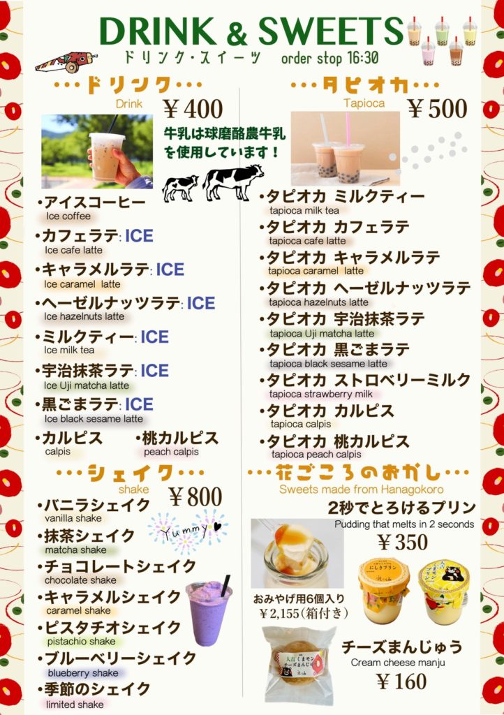 お知らせ 花ごころさんのドリンクメニューにシェイクが追加! 花ごころさんのドリンクメニューにシェイクが追加されました。シェイクもバリエーション豊か!どれもおすすめです。ドリンクは土日祝限定メニューとなりますので、よろしくお願いいたします!※写真はピスタチオシェイク